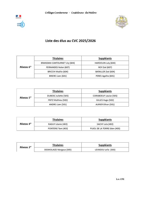 | Mme ARGOULON (suivi 6èmes et 5èmes) | CPE | ||