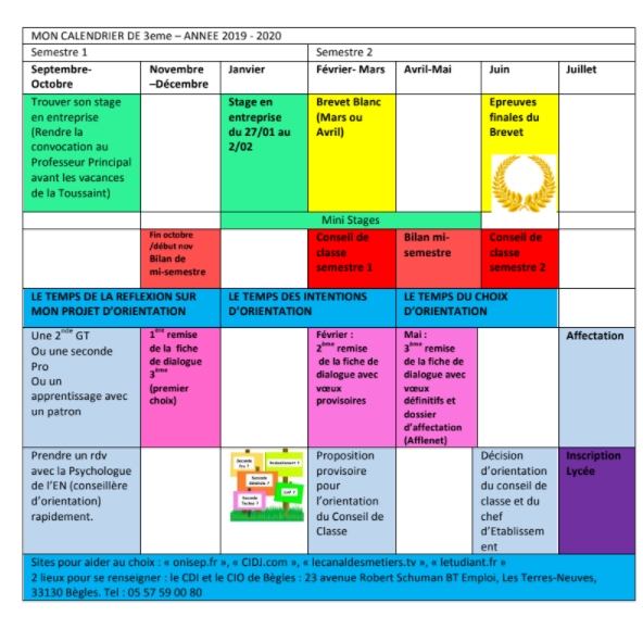 Panorama des étapes clés de l'orientation de la classe de 3e
