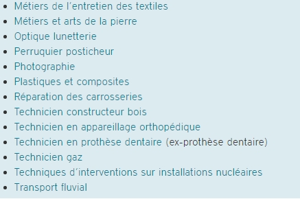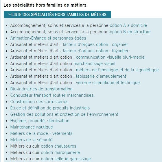 Une trentaine de spécialités restent trop spécifiques pour rentrer dans une famille (par exemple la maintenance nautique ou l'optique lunetterie).