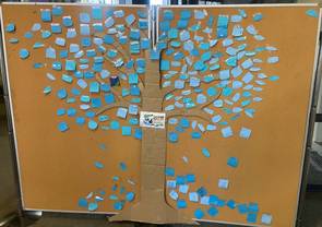 Le mur d'expression réalisé par les élèves de 4èmeB du collège est exposé à la bibiothèque d'Eymet jusqu'en janvier 2025.