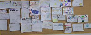Les élèves de 6ème 3/4 et 5 ont choisi de célébrer la journée européenne des langues par un affichage multilingue dans leur salle d'anglais.