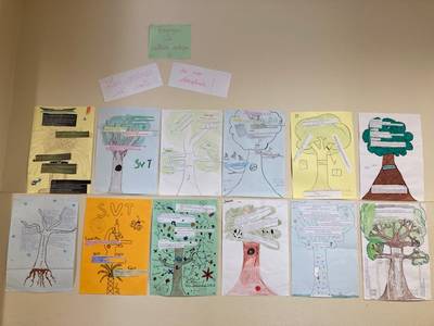 Vingt-six étymologistes en herbe ont réalisé un arbre à mots de leur discipline favorite : SVT, eps, mathématiques et français ont été passées au crible, afin d’élucider l’origine (étymologie) des mots-clés retenus, leur sens et les mots de la même famille. N’hésitez pas à observer avec curiosité les affiches, dans le couloir, en face de la salle 110, qui constituent le projet de fin de la séquence de début d’année : « Le collège, un jeu d’enfant ! ».