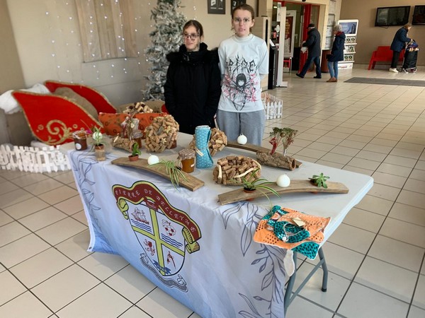 Vente d'objets confectionnés par les élèves de la SEGPA dans le hall d'Intermarché (PAUILLAC)