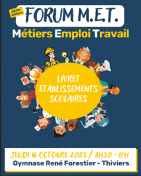 Jeudi 16 octobre, les élèves de 3e se sont rendus à Thiviers pour la 6e édition du Forum M.E.T. organisé par la Communauté de Communes Périgord-Limousin, la Mission Locale du Haut Périgord et le Club Entreprises du Haut Périgord. Cet évènement phare met en lumière la richesse des métiers, les entreprises locales et les établissements du Périgord Vert.