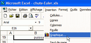 | Pour construire le graphique il faut choisir le menu "Insertion" puis "Graphique..." (figure 27). |