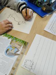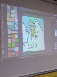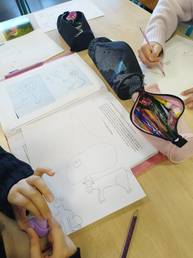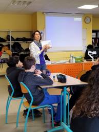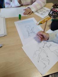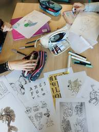 Après une présentation de son travail et de la chaîne du livre, elle a pu conseiller les 503 dans la réalisation de leur chimère et les 602 dans l'illustration de leur fable de Jean de La Fontaine.