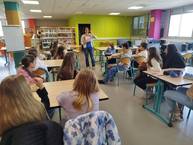 Dans le cadre du projet JEL (Jeunes en Librairie), Mme Piantanida, autrice et illustratrice de la série "Macaron et Canelé", est venue à la rencontre des élèves de 503 et de 602 (groupe de Mme Kirsch).