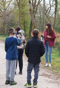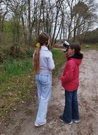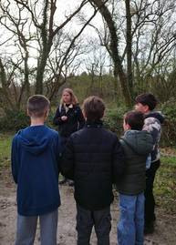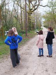 Vendredi 03 avril, les groupes de 605 et 607 de Mme Lima, accompagnée de Mme Lalanne-Tisné, ont profité d'une sortie de la forêt proche du collège. Cette sortie, encadrée par Aleksandra de l'association "L'éveil vert", a permis aux élèves tout d'abord d'écouter les différents bruits de la forêt (à l'aide d'un microphone parabolique) et d'observer les différentes essences d'arbres et de plantes.