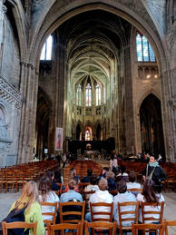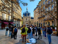 Le déjeuner a été pris tous ensemble place Pey-Berland, au pied de la Tour Pey-Berland.