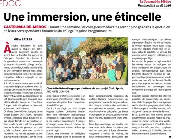 Jeudi 02 et vendredi 03 Avril 2026, les élèves de 601, 602, 603 et de 607 sont sortis à Blaye pour une journée « histoire, géographie et biologie » organisée par leurs professeurs d’Histoire-Géographie-EMC et de SVT.
