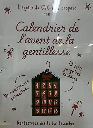 Idée originale du Conseil de la Vie Collégienne, la création d'un calendrier de l'Avent sur le thème de la gentillesse.