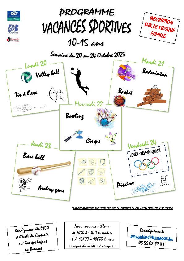 Le planning des Vacances Sportives de la ville du Bouscat est téléchargeable ICI.