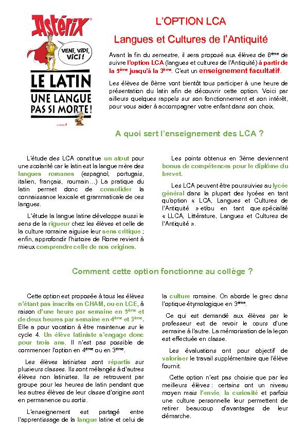 Réponses à vos questions concernant les LCA (langues et cultures de l'Antiquité) ICI
