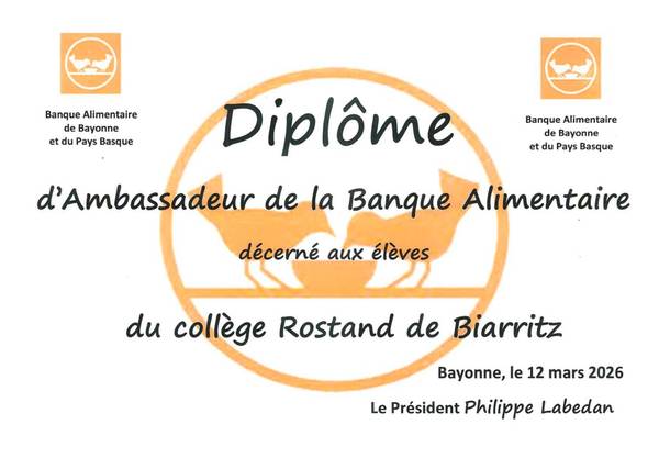 Le Collège Jean Rostand a une nouvelle fois participé à une collecte de denrées alimentaires au profit de la Banque alimentaire 64 et récolté 203 Kgs de denrées !