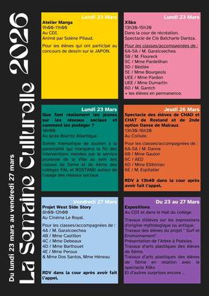 Retour en images sur les évènements de la Semaine Culturelle 2026 qui s’est déroulée du 23 au 27 mars.
