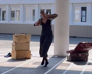 -2- Le spectacle « Xilko » de la compagnie Batcharte Dantza dans la cour de récréation.