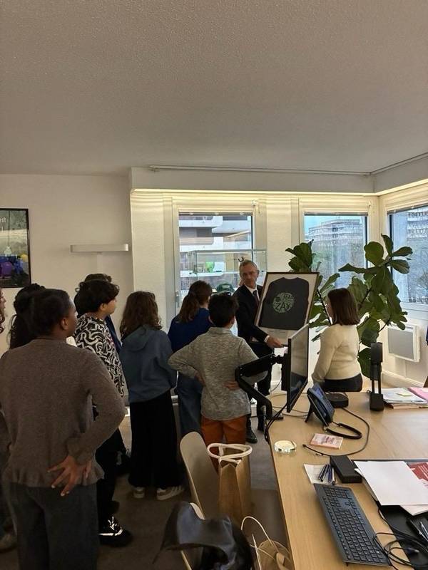 Pour le remercier pour son accueil, un maillot aux couleurs de notre collège lui a été offert !