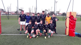 Le mercredi 17 Janvier 2018, la section sportive rugby Pau se déplaçait à Biarritz pour affronter les sections sportives des collèges Jean Rostand de Biarritz et Cel le Gaucher de Mont de Marsan. Après un pique-nique pris sur place entre deux averses, nous nous échauffons pendant que nos homologues landais et basques finissent d'en découdre dans un match qui se terminera sur un score assez serré où les Biarrots accrocheurs, menés tout le match, finiront par renverser la vapeur en toute fin de partie pour s'imposer sur le fil.