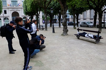 Après avoir participé aux deux ateliers de découverte de la photographie et de prise en main de boitiers numériques, un petit groupe d'élèves d'UPE2A s'est exercé à la prise de vue dans des endroits symboliques de la ville de Pau, comme le palais de justice, l'hôtel de ville et le conseil départemental. Ils étaient accompagnés de Philippe Glorieux, membre du collectif "A propos", ainsi que du photographe Christophe Delory, en résidence au sein de l'association.