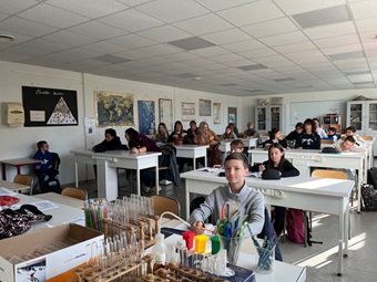 Les élèves de 604 et leur professeur d'EIST, Mme Jovy-Chabrol, ont accueilli ce mercredi 10 avril 8 parents de 6e4.