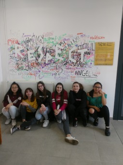 Les élèves du club Street Art et Mme Massicault ont réalisé une oeuvre artistique pour illustrer la charte du Respect.