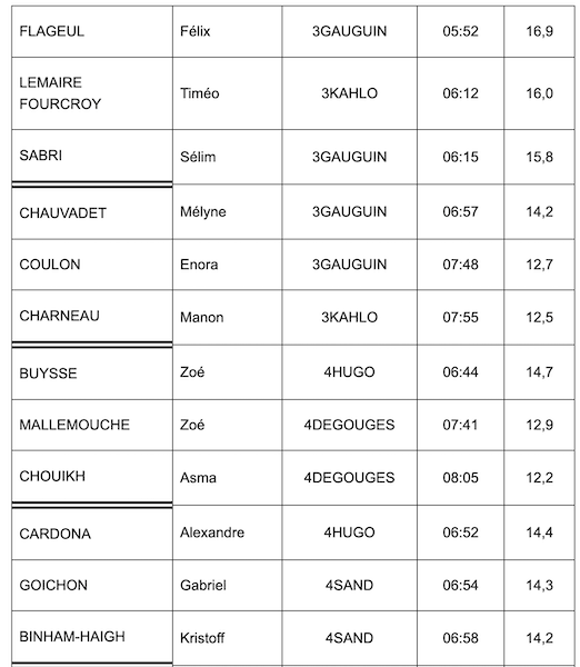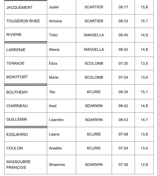 Nous félicitons encore tous les élèves pour leurs efforts et leur comportement. Nous remercions les élèves dispensés pour leur aide mais aussi tous les adultes qui se sont impliqués de près ou de loin dans cette manifestation.
