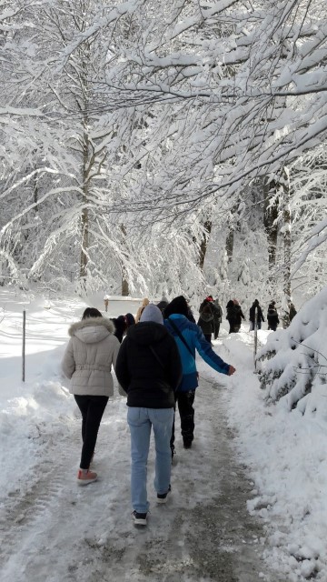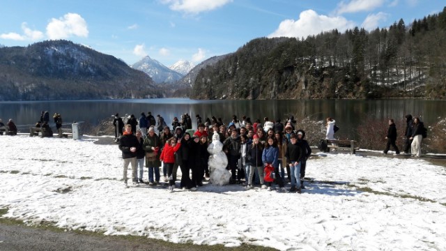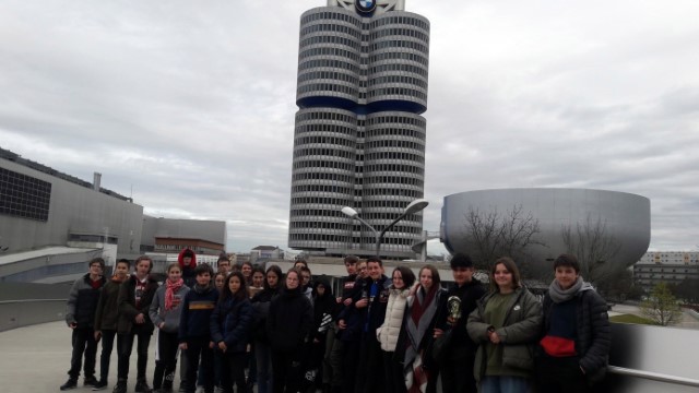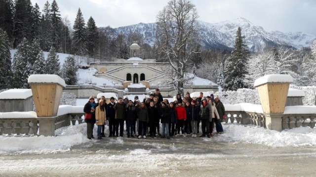 30 germanistes, accompagnés de leur professeure d’allemand, Madame Olivier, ainsi que de Madame Arnaud et de Madame Vuillermet (toutes les deux germanophones !) ont pu découvrir la région de la Bavière pendant une semaine. Le programme était très varié : visite guidé du centre-ville de Munich, découverte du Deutsches Museum (musée de technologie et de sciences) avec plein d’expériences interactives, visite des châteaux féériques du roi Louis II de Bavière : le château de Linderhof (« mini-Versailles ») (avec les joies de 30 centimètres de neige poudreuse fraîchement tombée et un temps magnifique !), le château de Neuschwanstein, dont Disney s’est inspiré pour le château de la Belle au bois dormant ! Ensuite la visite du stade Allianz-Arena du club Bayern de Munich, ou nous avons même pu rentrer dans les vestiaires et faire notre entrée dans le stade comme les vraies stars du foot ! La visite du musée de l’entreprise BMW a comblé les amateurs de voitures aussi bien par des modèles anciens que par des voitures du futur ! A ne pas oublier la découverte de l’ancienne Pinacothèque, le célèbre musée d’art, ou nous avons pu voir des tableaux de peintres célèbres, comme Albrecht Dürer, Claude Monet, Vincent Van Gogh, Paul Cézanne et bien d’autres encore ! La visite de la résidence royale et du théâtre baroque a clôturé notre séjour, sans oublier évidemment les moments de shopping, ou nous avons pu exercer notre allemand pour acheter entre autres des délicieux Bretzel !