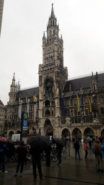 La Mairie (das Rathaus) de Munich avec le carillon, la Marienplatz