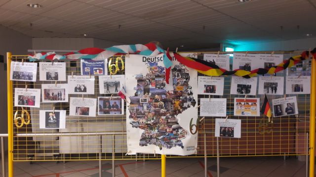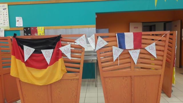 Une frise colorée aux couleurs de l’Allemagne a aussi orné les murs du bâtiment C pour célébrer les 60 ans de l’amitié franco-allemande ainsi que des affichages explicatifs avec des photographies permettant de comprendre l’importance de cet évènement historique entre la France et l’Allemagne.