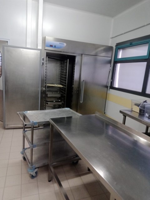 - un réfrigérateur à double entrée ( côté cuisine et côté self )