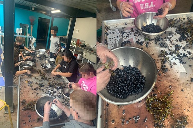 Le déjeuner offert par le château a rempli les pensées de nos élèves, pour être ainsi tous disposés l'après-midi à égrapper, une partie à la main, l'autre partie avec un érafloir manuel gentiment prêté par M. Paty.