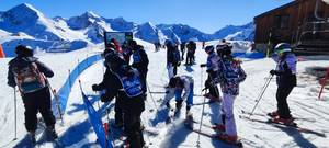 Ensuite, le moment tant attendu, se retrouver sur les pistes de Peyragudes. Les élèves étaient encadrés par 5 moniteurs de l'ESF pour une séance de 3 h répartis en 3 groupes : un groupe de confirmés (11), un groupe de débutants (12) et un groupe de 35 élèves qui n'avaient jamais chaussé de ski. Ils s'en sont tous bien sortis pour une première !