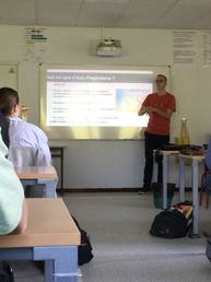 Ancien élève du collège de la Reine Sancie, Elie est venu témoigner auprès des collégiens de troisième et répondre à leurs questions.