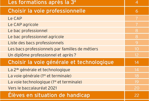 Ici le sommaire de la brochure :