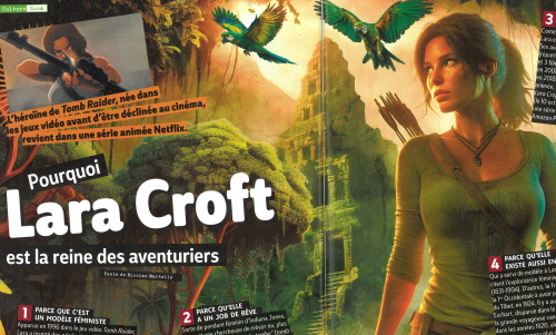Il y a un article, dans ce numéro, qui revient sur Tomb Raider (jeu vidéo, films, bientôt séries...). J'ai été choqué quand j'ai lu que le journaliste faisait d'elle une héroïne féministe, alors que par sa tenue (sexy, forcément sexy) et sa silhouette (sexy, forcément sexy), j'ai toujours estimé qu'elle répondait aux clichés sexistes des hommes. Ai-je tort ? Peut-être. En en parlant avec Maéva (la surveillante), elle m'avouait que Tomb Raider était un modèle pour elle quand elle était adolescente...