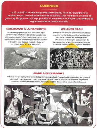 Si les élèves de Troisième ont déjà étudié la Guerre Civile, avec (en plus) une visite au Camp de Gurs, les autres élèves tireraient profit de la lecture d'Histoire Junior. Ils découvriraient le rôle de Hitler, Mussolini, Franco, Staline, les Brigades Internationales...
