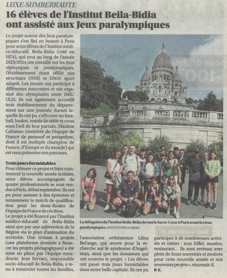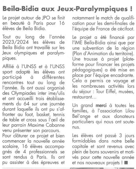 Le 13 juin dernier, je vous parlais du séjour des élèves de l'IME (Institut médico-éducatif) Beila Bidia à Paris, à l'occasion des Jeux Paralympiques. J'avais même mis le lien de la Trousse à projets pour que ceux qui le souhaitent soutiennent financièrement cette initiative.