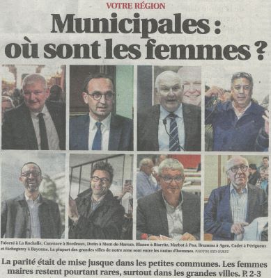 Dans le journal Sud Ouest de ce matin et que vous pouvez venir lire au CDI, vous avez le détail des résultats électoraux. Hier, on élisait nos maires (s'ils n'avaient pas déjà été élu·e·s la semaine dernière). Les spécialistes vous diront qu'il y a plein d'enseignements à tirer de ces élections. Que la droite ceci, que l'extrême-droite cela, que le camp présidentiel, bla bla bla...Si ça vous intéresse, vous savez ce qu'il vous reste à lire. Si ça ne vous intéresse pas, je peux le comprendre...