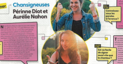 En lisant le dernier numéro de Science & Vie Junior, j'ai appris un nouveau mot : chansigneur. Il désigne les personnes qui font une transcription en langue des signes des chansons. L'article est très intéressant. Les deux chansigneuses nous apprennent que la langue des signes n'est pas universelle. Pendant la cérémonie d'ouverture des Jeux Olympiques, la langue des signes américaine avait été choisie. Et elles rappellent qu'on ne signe pas de la même manière (par exemple) le verbe manger selon qu'on soit originaire de certains pays d'Afrique (où on mange en mettant les mains dans le plat) ou du Japon (où on utilise les baguettes).