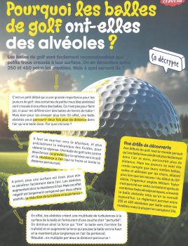 Et la page consacrée à la balle de golf ? C'est de la physique. Pour offrir moins de résistance à l'air, la balle était toute lisse, à la naissance de ce sport. Mais les joueurs de golf ont constaté que si la balle était toute cabossée, elle allait beaucoup plus loin. D'où l'apparition d'alvéoles... Et ça a marché. Avouez que c'est totalement contre-intuitif...Même si vous n'aimez pas le golf (comme moi), même si vous n'aimez pas la physique (comme moi), la lecture de cette page est passionnante...