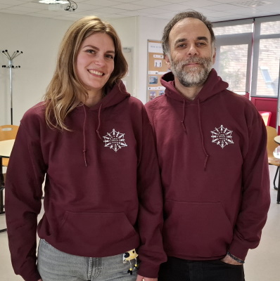 Aujourd'hui, sont arrivés les sweat-shirts du collège avec l'épatant logo dessiné par Mailen Etcheberry. Pour vous montrer à quel point les sweat-shirts sont beaux, j'ai fait appel aux deux personnes les plus canon (je n'ai pas d'autres mots) de ce collège. Et avouez que Chloé et moi sommes particulièrement à notre avantage en Collège Amikuze...
