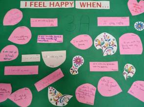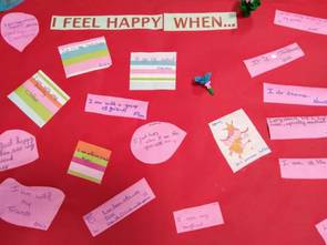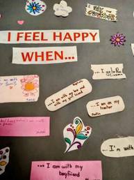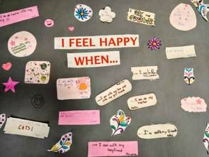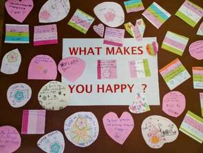 À l'occasion de la journée internationale du bonheur, dans le cadre des cours d'anglais, les élèves de 4e et de 3e ont été invités à compléter la phrase "I feel happy when..." et ceux de 6e et de 5e à répondre à la question "What makes you happy ?"