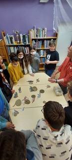 La séance s'est poursuivie à l'extérieur, sur le parking et dans l'espace à l'arrière de l'établissement. Quelques feuilles récoltées ont permis d'identifier quelques espèces présentes sur le site : merisier, noisetier, tilleul, charme, frêne, bouleau, érable, pin sylvestre.