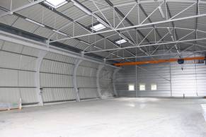 L'intérieur du bâtiment, avec un palan couvrant toute la surface