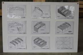 Mise en place de la structure bois dans le hangar, à l'occasion des Journées Portes Ouvertes