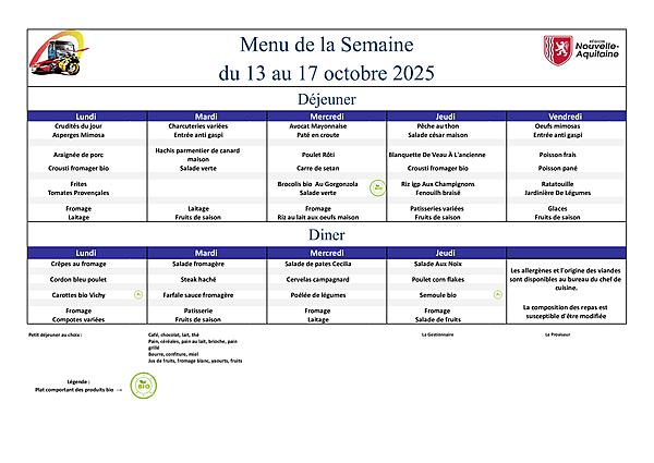 Les repas sont élaborés sur place, dans nos cuisines, par le chef cuisinier et son second.