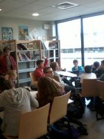 Lundi 13 mai 2013, les 6A et 6B du collège ont eu la chance de rencontrer la responsable du Lutrin magique (Libraire à Parentis) Cathy Gallardo venue avec 2 auteures de Jeunesse : Elisabeth Reinenger-Brissy et Madeleine Mansiet-Berthaud.
