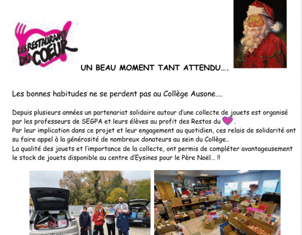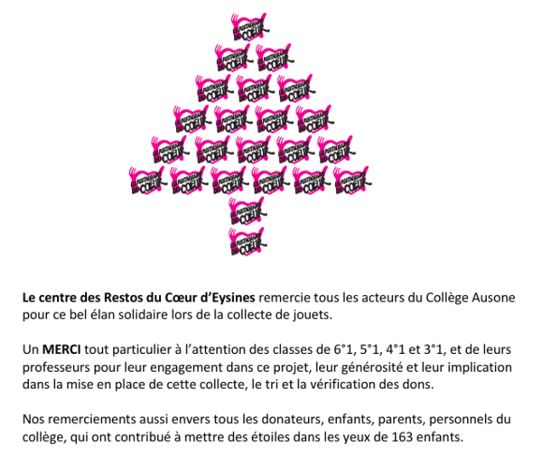 La boutique, installée pour l'occasion dans le hall d'accueil du collège, a rencontré un franc succès, grâce à la participation généreuse des familles ausoniennes.