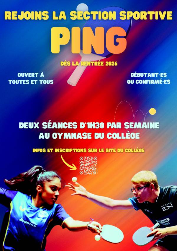 Découvrez la nouvelle section sportive scolaire tennis de table pour la rentrée prochaine!