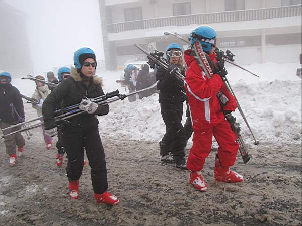 Après une bonne nuit de repos pour éliminer ce stress du départ, premières sensations sur les planches en cette matinée fraîche et pas encore ensoleillée. Elèves et professeurs sont plein d'enthousiasme et prennent contact avec cette belle épaisseur cotonneuse...